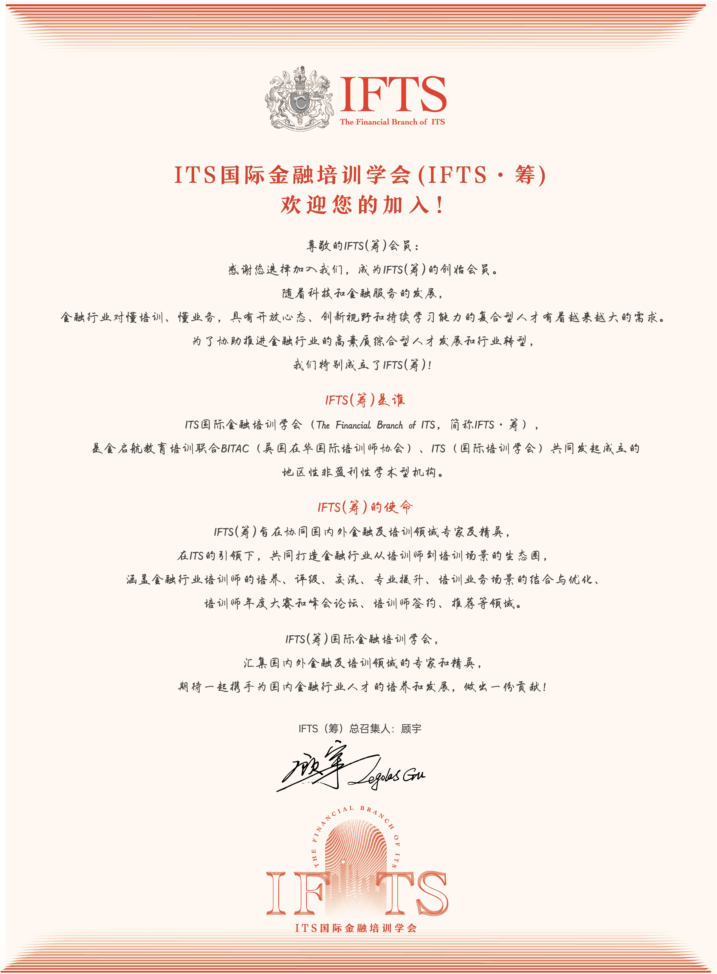 ITS国际金融培训学会(IFTS·筹)欢迎您的加入!